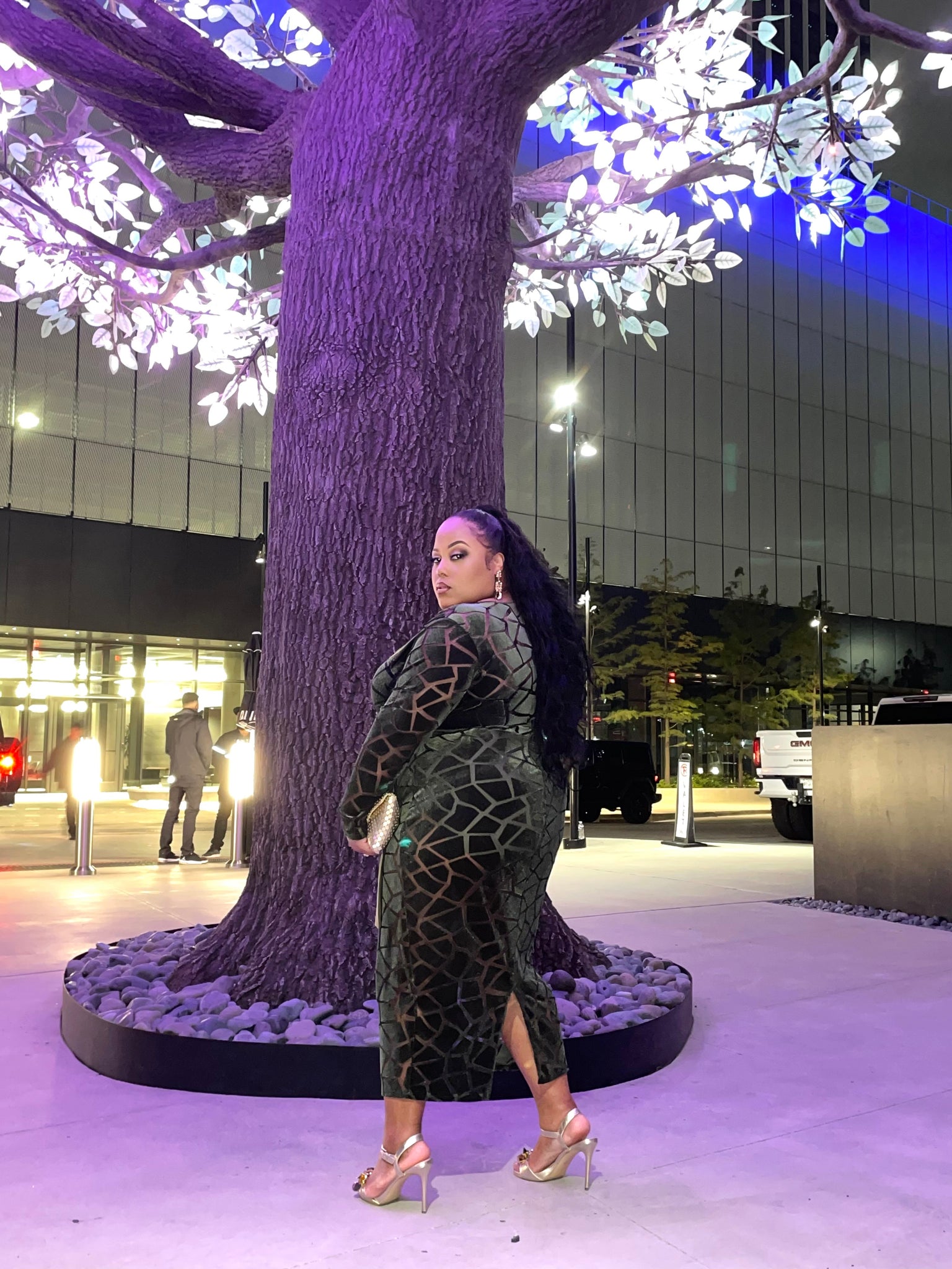 Step into elegance and allure with our breathtaking Velvet Lover Dress. Crafted from a luxurious stretch fabric, it contours to your body in all the right places, highlighting your curves and leaving a lasting impression. The chic V-neck and long sleeves add a touch of sophistication, while the sumptuous velvet adds a luxurious touch. Be the envy of all in this breathtaking dress!